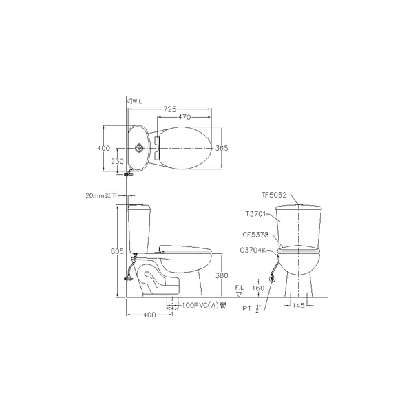 ALEX 電光 上按式二段式奈米省水馬桶 ACT3703CK-A/ACT3704CK-A
