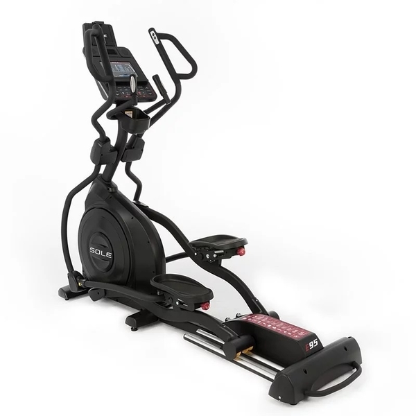百麗運動用品有限公司提供SOLE索爾E95橢圓機,前置12Kgs飛輪搭配雙軌滾輪滑軌設計,踏板採人工力學內傾2度及20吋跨步距離,提供舒適高效運動體驗。具20段上坡系統模擬登山情境與10段踏板調節,厚實鋼骨設計穩固耐用。霧黑色系簡約美觀,支援藍芽音樂播放及USB供電,搭配SOLE APP物聯功能,適合家庭與健身房,結合專業性能與時尚外型