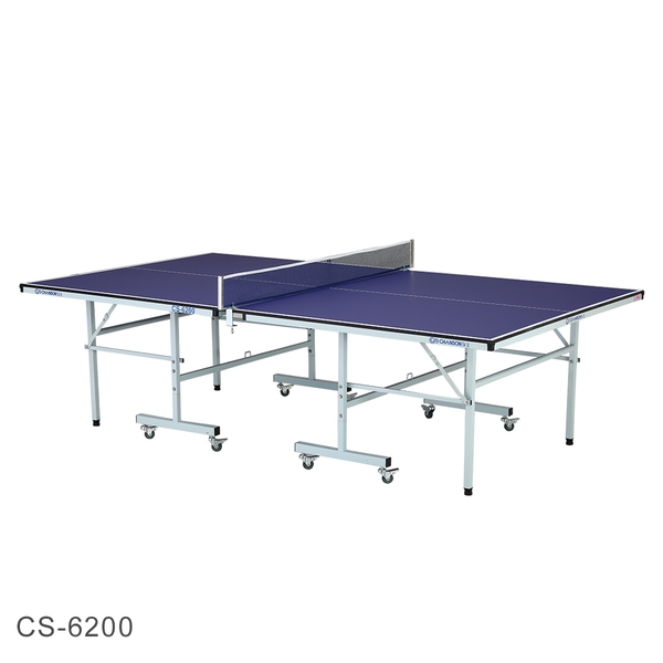 百麗運動用品有限公司提供強生CS-6200標準規格桌球桌,桌面厚15mm藍色檯面,符合國際標準274×152.5×76cm。桌框採30×20mm鐵框加固,桌腳方管30×30mm及40×40mm鋼管聯結,配50mm固定剎鎖抗壓輪,穩固耐用且可調高低。附高級插套式藍色網架、2支練習桌拍及半打練習球,適用家庭、社區及學校場館,提供安全穩固、專業且高品質桌球娛樂體驗
