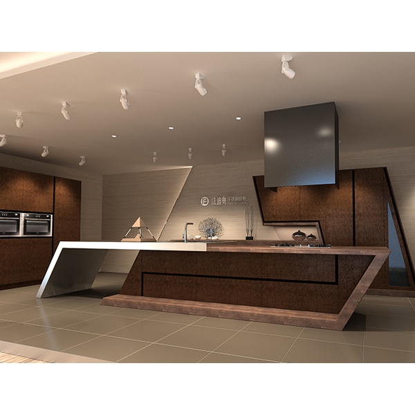 整體造型是由不規則幾何形體推砌而成,菱角分明,富有設計感,個性化十足,並富有功能性與實用性。巧克力色櫃體,賦予整體空間高端時尚國際感。