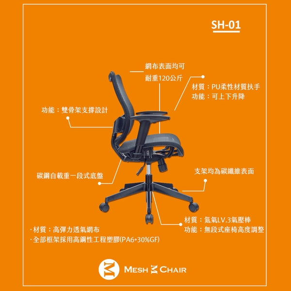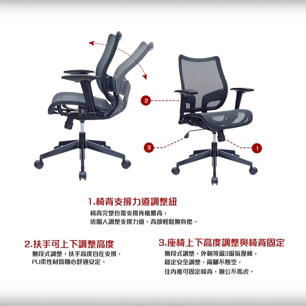 人體工學設計、簡易機能椅、全網透氣、五年保固