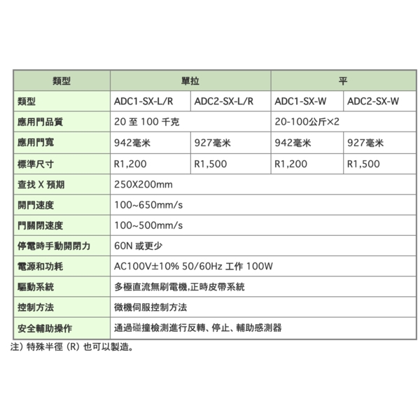 HOKUYO ADC-SX 圓弧型自動門機 Circular Slide Type Automatic Door產品說明
