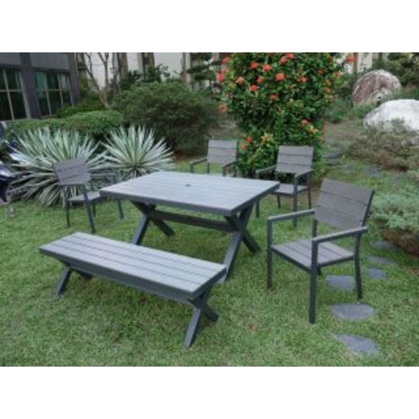 各式庭園休閒桌椅、裝飾品、庭園燈、圍籬、花架、門、信箱、庭園踏板、傘架、暖爐、庭園噴水池、公園桌、公園椅、休閒桌、休閒椅、傘座、遮洋傘、藤椅、搖椅、躺椅、庭園椅、戶外暖爐、5尺 6尺塑木桌椅組2020-34-2