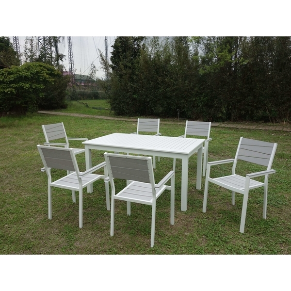 各式庭園休閒桌椅、裝飾品、庭園燈、圍籬、花架、門、信箱、庭園踏板、傘架、暖爐、庭園噴水池、公園桌、公園椅、休閒桌、休閒椅、傘座、遮洋傘、藤椅、搖椅、躺椅、庭園椅、戶外暖爐、鋁板條長方桌椅組HT-376 PC-152A