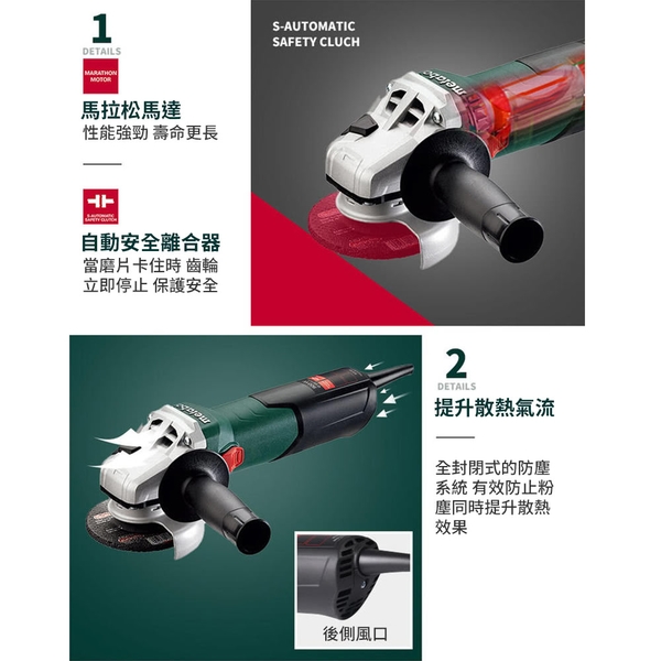 產品文件 : 【metabo 美達寶】 德製四英吋砂輪機 W9-100(插電工具)