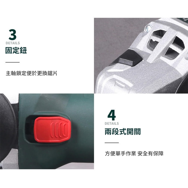 齒輪箱可以旋轉90度,方便左手操作或切割,碳刷自動停止保護裝置
