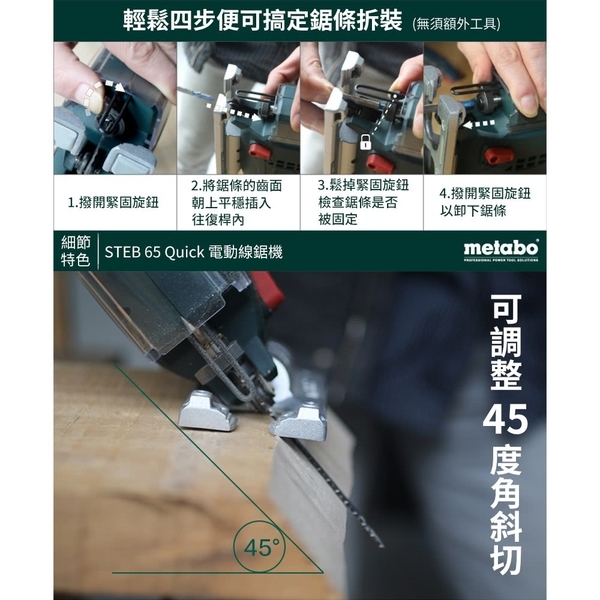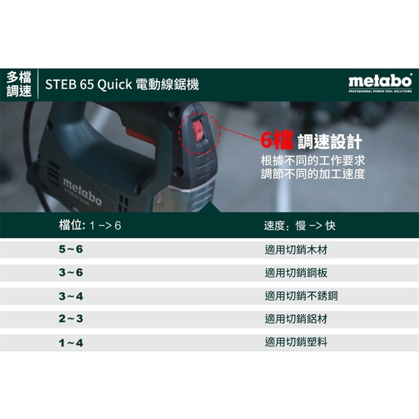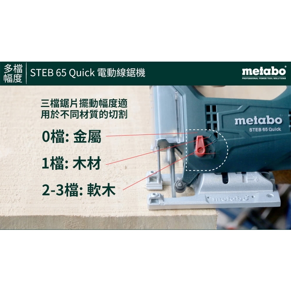產品文件 : 【metabo 美達寶】 快拆型調速線鋸機 STEB 65(插電工具)
