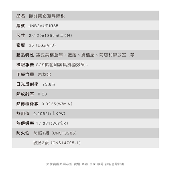 節能寶隔音隔熱墊有多項系列產品,分別應用於各種建築,如工業廠房、商業空間、住家乃至於貨櫃的保溫與隔熱、減噪…等方面,均有卓越表現。 另外,對應於機械設備的隔熱、保冷與減噪,降低碳排放也有最佳效能與最低成本的解決方案。