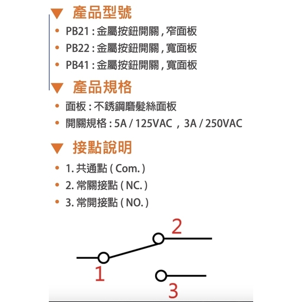 ASTER PB21, 22, 41 金屬按鈕開關 Metal Touch Switch⭕️ 如有任何產品問題及報價,歡迎來電詢問,我們會立即為您服務。