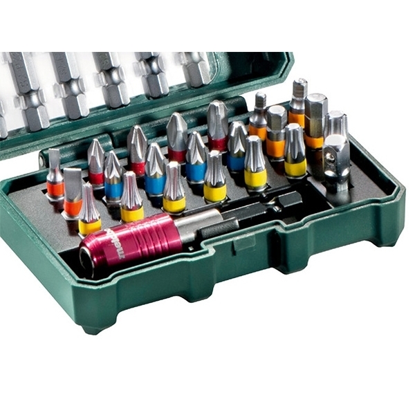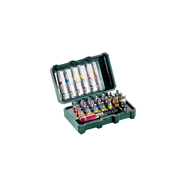 L= 25mm (21 pcs) PH 1 x 1, PH 2 x 2, PH 3 x 1; PZ 1 x 1, PZ 2 x 2, PZ 3 x 1; SL 3 x 1, SL 5 x 1; H 3 x 1, H 4 x 1, H 5 x 1, H 6 x 1; T 10 x 1, T 15 x 1, T 20 x 2, T 25 x 1, T 30 x 1, T 40 x 1