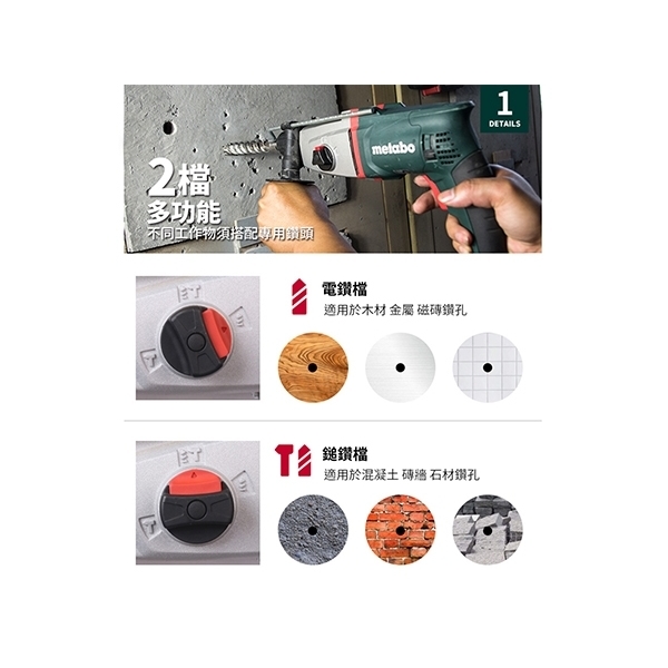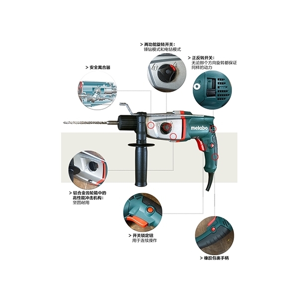 具有2種功能的組合錘:鎚鑽和鑽孔