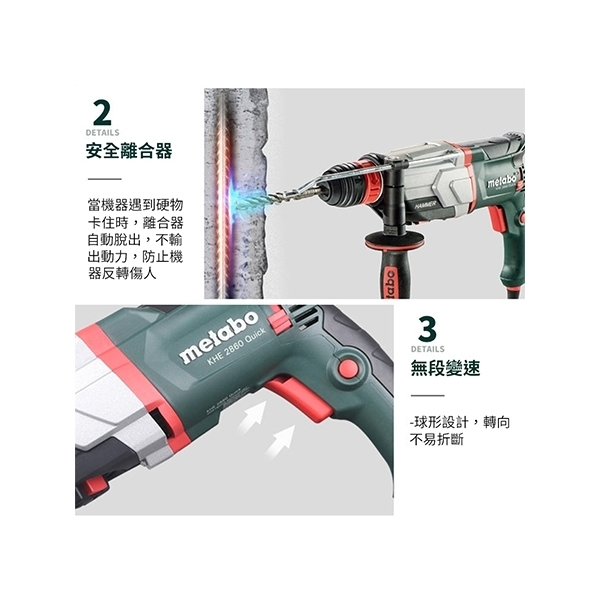 Metabo Quick:在SDS Plus夾頭和自動夾頭之間快速轉換方便於木材和金屬上鑽孔