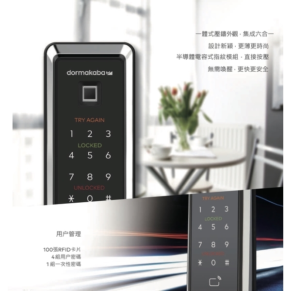 密碼登記:密碼4~12位,最多可註冊4組用戶密碼,一次性密碼1組