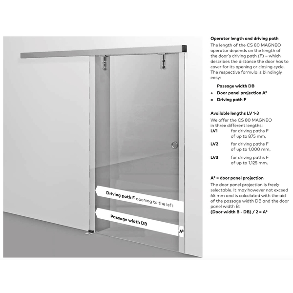 CS 80 MAGNEO是由門套件、外蓋、主機和配件組成的模組化系統。該系統可輕易將任何門改造為橫拉自動門應用。