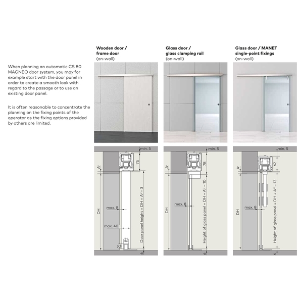 新系統的靈活性,使得 CS 80 MAGNEO 開創了很多新的應用領域。橫拉門操作裝置非常靈活,可自由選擇隱藏式或壁掛 / 外露式安裝。