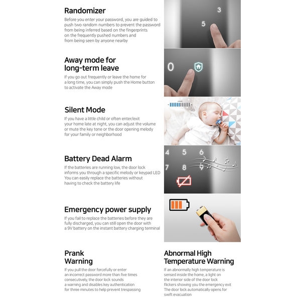 三星電子鎖橫拉門專用SHS-D530一款橫拉門專用的智能電子門鎖,輔助鎖。兩個落地螺栓增強鎖定裝置,可提高房屋的安全性,防止強行進入,增強了安全性。時尚/輕巧/修身/良好設計