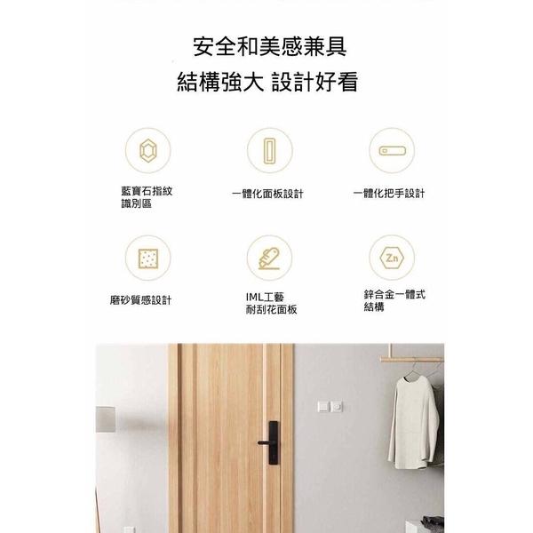 小米M【碳素黑】 智能指纹電子鎖小米系列家用防盜密碼智能電子門鎖安裝(全台皆可安裝)