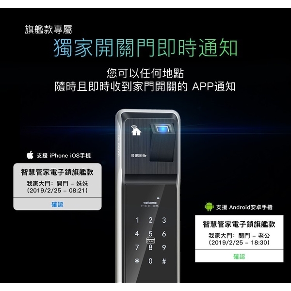 ►獨家功能:APP遠端解鎖、Siri中文語音解鎖、Google中文語音解鎖、即時管理 APP使用權限(分享/收回)、即時開關門通知、即時開關門記錄查詢