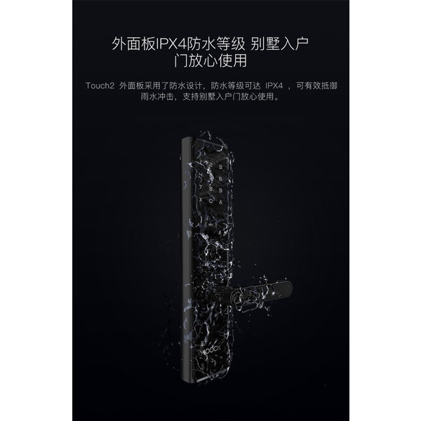 鹿客loock防水電子鎖touch2智能門鎖IPX4防水等級,別墅入戶門安心使用。