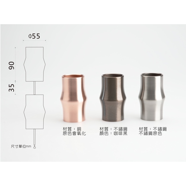 顏色:1.不鏽鋼原色、2不鏽鋼烤漆咖啡黑色、3.銅(原色會氧化)