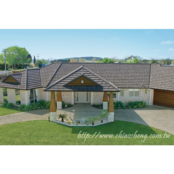 有著傳統木板瓦的樸素成熟外觀,透過深淺紋路的設計來呈現立體陰影,創造出眾的特色,不單單有亮麗的外觀,也具備了金屬瓦的優點,無順擔心傳統木板的防火問題,表面礫石對於阻絕噪音與耐用壽命更是達到出眾的境界。