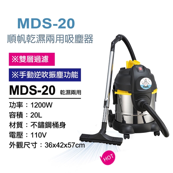 順帆MDS-20乾濕兩用吸塵器-20L/原廠全新/高屏經銷商/高雄綠陽能源環保