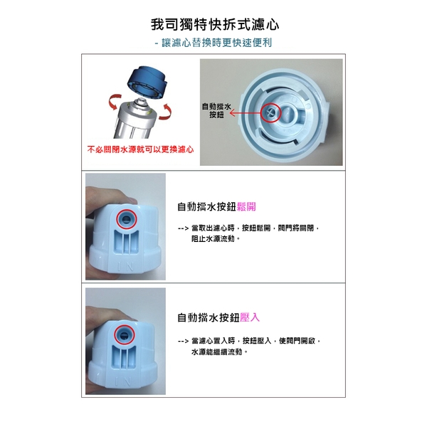 ***濾心可以90°抬起做更換,快拆式濾心使替換更方便容易!