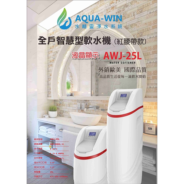 產品文件 : (單槽)AWJ-25L 紅腰帶 全戶智慧型軟水機(控制頭110V/220V通用)