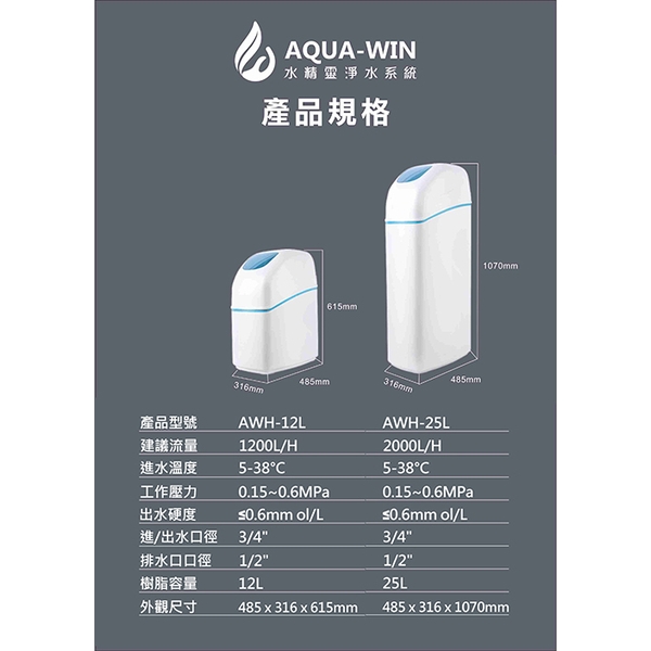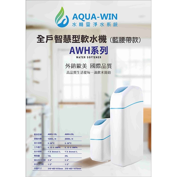 產品文件 : (單槽)AWH-25L 大藍腰帶 全戶智慧型軟水機(控制頭110V/220V通用)