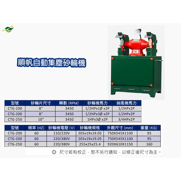 順帆自動集塵砂輪機CTG-200~250/原廠全新/高屏經銷商/高雄綠陽能源環保