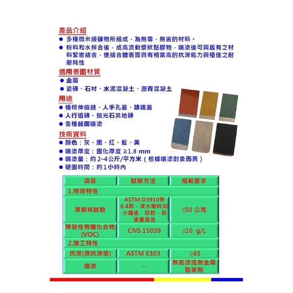 本公司所發展之強化玻璃路面反光標記,係由光學級高強度韌化特殊玻璃經高溫熔射鍍鋁製成,其中白色強化玻璃標記之玻璃本體為透明無色,夜間反光為純白色,黃色強化玻璃標記玻璃本體為透明黃色(絕非利用電鍍或染色而成),夜間反光為純黃色,由於玻璃本體分別為無色及黃色玻璃,且完全抗太陽之紫外線及天候作用,故絕無褪色發黑脫落之顧慮。