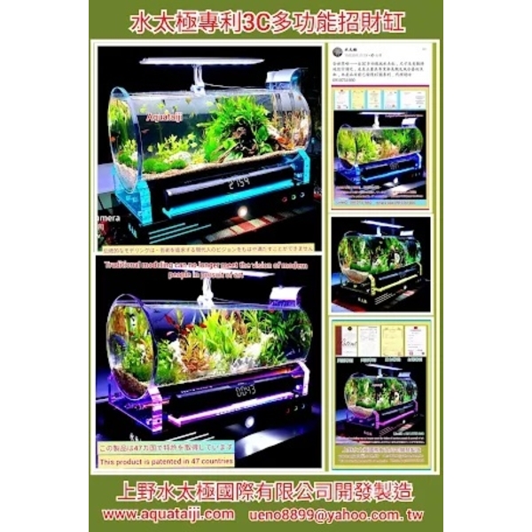 本公司經多年的努力與構思並融合傢俱業、建材業、燈飾業、百貨業、廣告工程業,以及水族工程等等製造技術,創造出一種前所未見的水太極專利水舞商品,本商 品以顛覆上述行業的姿態開始在市場出現,同時融合了建材、傢俱、燈飾、廣告用器具的功能,本商品所產生之光耀絢爛的水舞汽泡流,除了能提升整體裝潢設計的 氣氛外,更為靜態的建材傢俱帶來動態的生命力。對於商業空間來說,更可藉著水舞汽泡流的躍動,提高陳列商品的價值,吸引消費者的目光刺激消費者的購買慾。