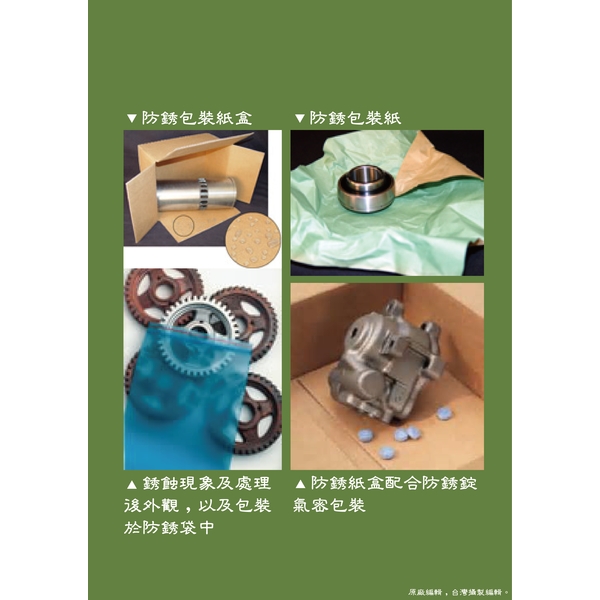 金屬銹蝕抑制包裝紙金屬銹蝕抑制包裝紙是依據最新的氣相抑制防腐蝕及環保安全的科技觀念所特別研發集成配方製造而成。