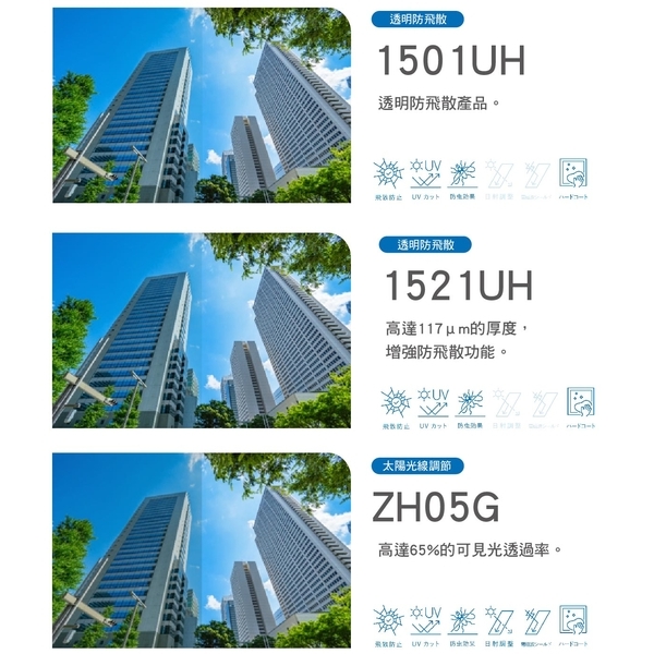 防止颱風、地震、爆炸意外時玻璃碎片飛散,提高玻璃的安全性。(符合日本JIS A 5759標準規格)