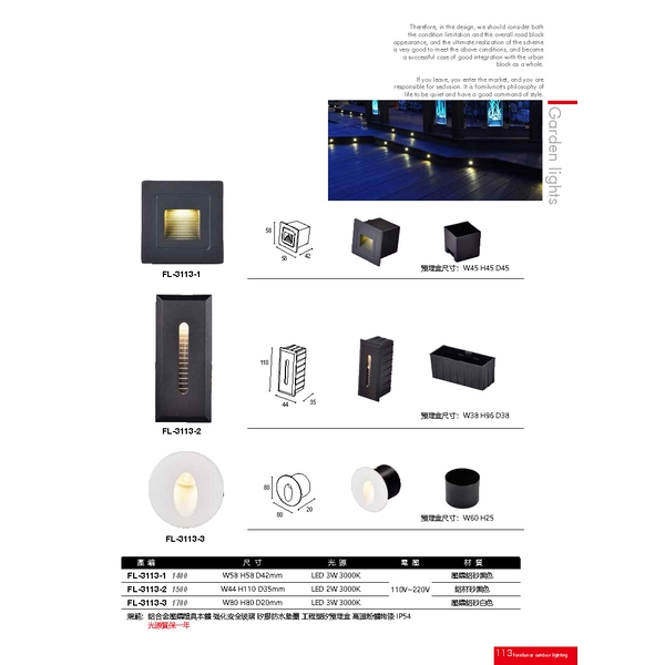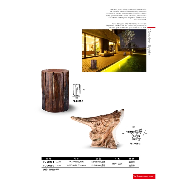 種類包含造型路燈、壁燈、立燈、地埋燈、照樹燈、洗牆燈、景觀立燈、階梯燈、水底燈。