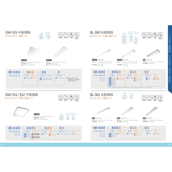 種類包含LED平板燈、LED支架燈、LED光板、LED層板燈、LED高天井燈、LED停車場節能感應燈、LED燈管燈具等等。