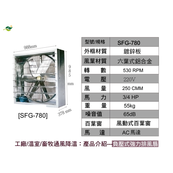 31"鍍鋅板負壓式強力排風扇 SFG-780