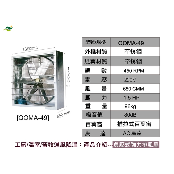 36"不锈鋼扇葉負壓式強力排風扇 QOMA-36