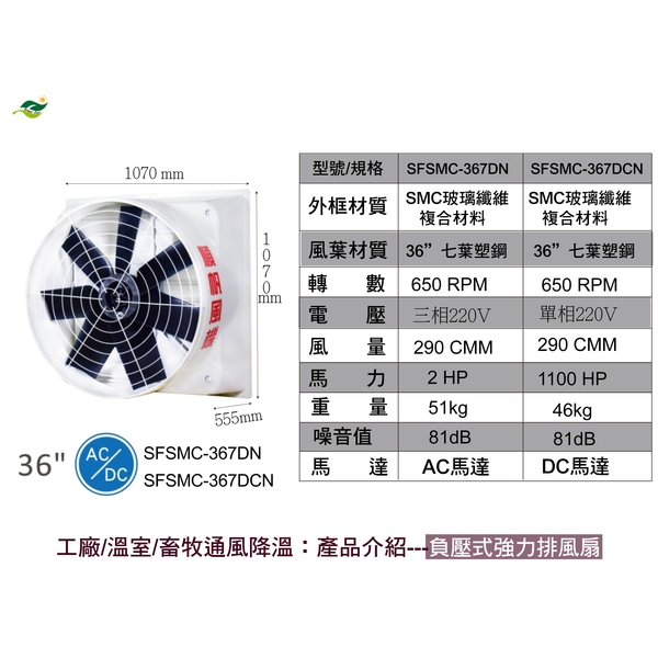 36"七葉塑鋼扇葉 / 直接式SFSMC-367DN [AC馬達]