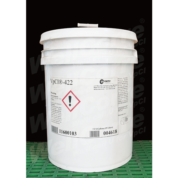 VpCI-422是一種用於金屬除銹(銹蝕抑制處理)但對人體完全無危害性的除銹劑產品,它可處理的金屬例舉範圍有;鋼、鐵、銅、黃銅、鉻以及鋁等。由於VpCI-422與危害性的傳統除銹劑在使用比較上更為安全,所以它的應用可以杜絕許多金屬無法重覆使用的成本負擔。