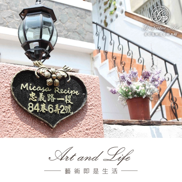在業界服務超過20年的開發冠企業有限公司,主要營業項目有防火門、硫化銅門、鍛造門等各式大門。2004年起旗下成立葡萄藤鍛造藝術精品,團隊由一群新穎、有創意的年輕人組成,突破舊式框架,不斷研發符合潮流具現代感的鍛造製品。葡萄藤專營鍛鐵鍛造門牌、鍛造信箱、招牌、欄杆及客製化鍛造藝品,我們的團隊擁有新一代的設計美學和紮實的精鍊技術,兩者相結合,使鍛鐵充滿生命力,激盪出令人讚嘆的火花,件件作品都是專屬您的藝術風格,產品推出即深受顧客喜愛。