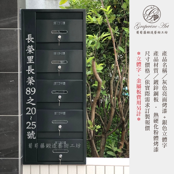 • 灰色亮面烤漆 / 銀色立體字地址資訊 / 連體信箱 大樓信箱 集合信箱 社區信箱-葡萄藤鍛造藝術有限公司灰色亮面烤漆 / 銀色立體字地址資訊 / 連體信箱 大樓信箱 集合信箱 社區信箱-葡萄藤鍛造藝術有限公司