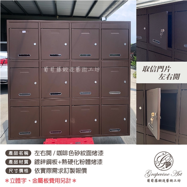 • 門片左右開 咖啡色砂紋面 連體信箱 大樓信箱 集合信箱 社區信箱-葡萄藤鍛造藝術有限公司門片左右開 咖啡色砂紋面 連體信箱 大樓信箱 集合信箱 社區信箱-葡萄藤鍛造藝術有限公司