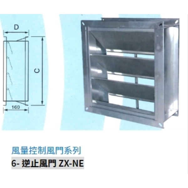 *葉片採用鋁板1.0mm質輕,送風時葉片揚起,風停葉片自動關閉,葉片屬單獨開啟方式