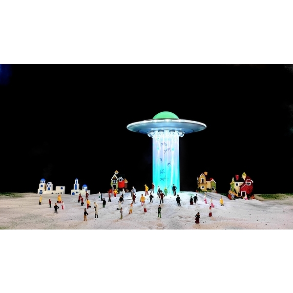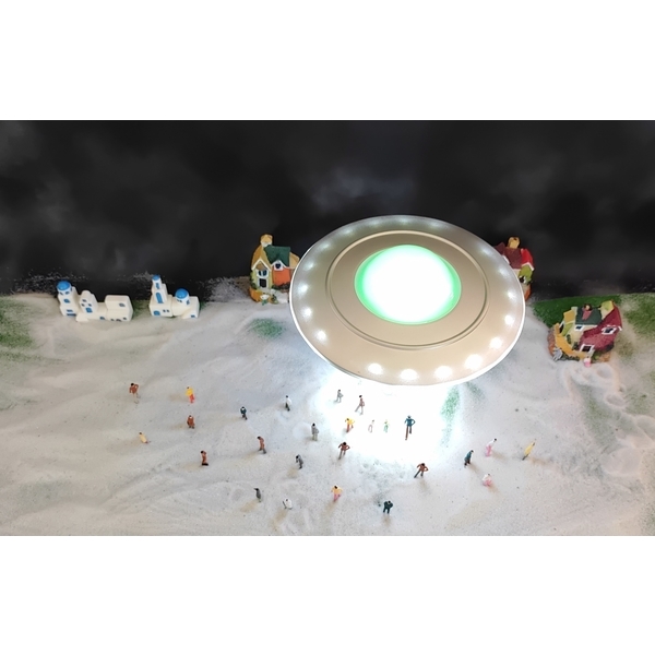 *此飛碟模型經多年的探索實驗終於找出了利用雷射全息反光膜結合特製的led燈使反射出立體光束像極了UFO的‘’牽引光束‘’,此模型開發,正可以讓您分享網路傳說中的外星高科技文明‘’牽引光束‘’*飛碟燈是仿製虛擬飛碟放光造型.所放射的立體彩光可隨視角上下的改變變換光彩.觸控開關可控制彩光的動態變換或靜態狀態.外星人有夜光功能.適合於居家擺設照明.有療癒.娛樂功能.
