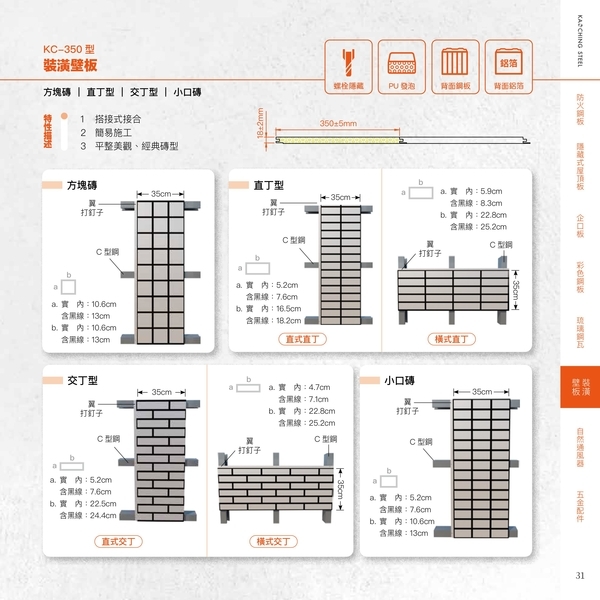 KC-350型產品文件 : 裝潢壁板-方塊磚|直丁型|交丁型|小口磚