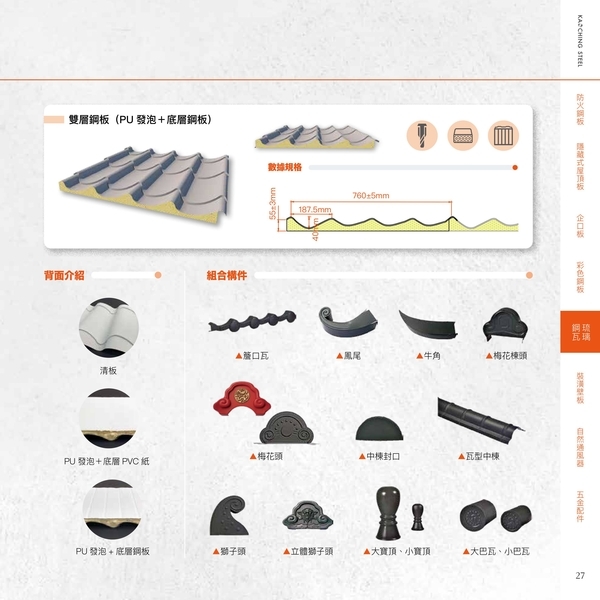 KC-760型產品文件 : 琉璃鋼瓦-清板|PU發泡 + 底層PVC紙|雙層鋼板(PU發泡 + 底層鋼板)2