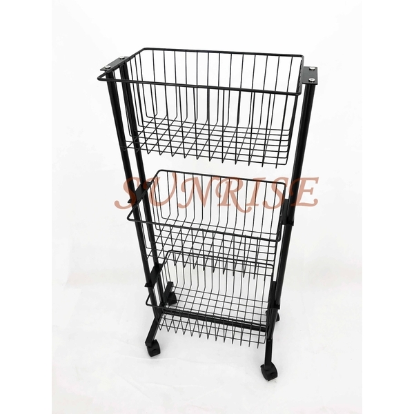 鐵線三層置物車(黑平光)簡約風格、收納方便