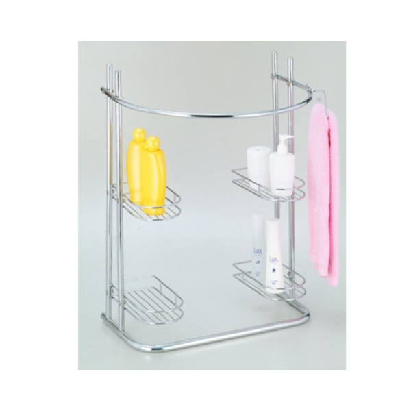 浴室置物架/乳液瓶/瓶罐/毛巾/落地架此產品可放置於洗手檯下,如此一來能幫你節省物品放置的空間之
