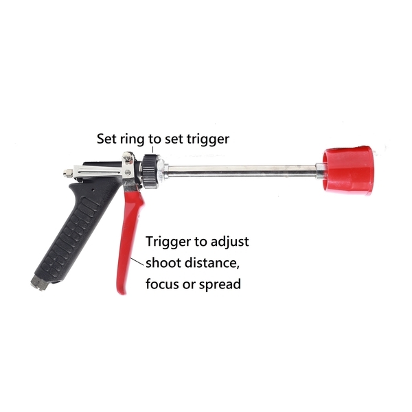 4. 噴出的農藥可以調節分散或集中。扳動噴槍的調節板機獲得所需的擴散角度後,轉動固定環以固定噴槍的調節板機。即可將手指從噴槍的調節板機上移開,輕鬆讓噴嘴以設定擴散角度噴藥。